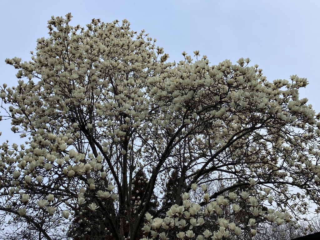 この時期はハクモクレンが奇麗です。写真は日月亭のハクモクレンです。