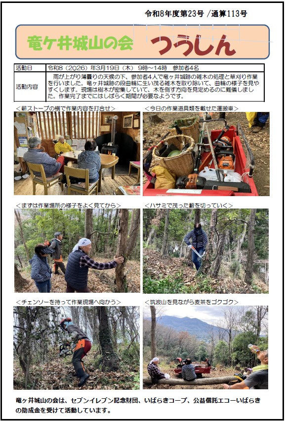 「竜ヶ井城山の会つうしん」第113号を発行しました